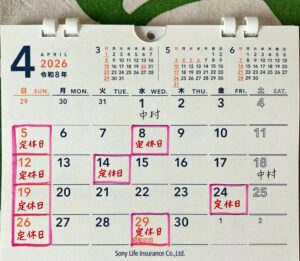 4月の定休日とスタイリストお休みのお知らせ